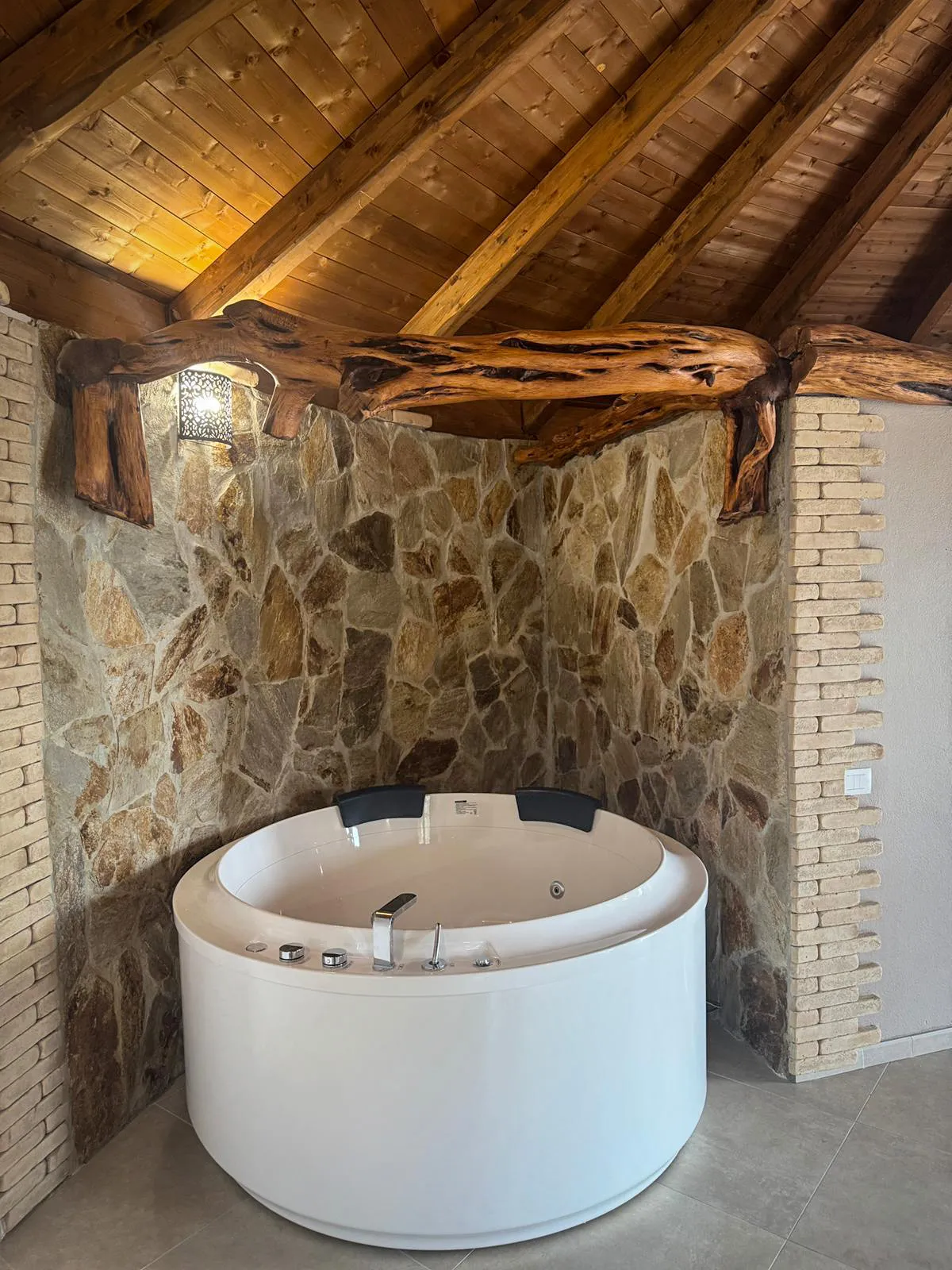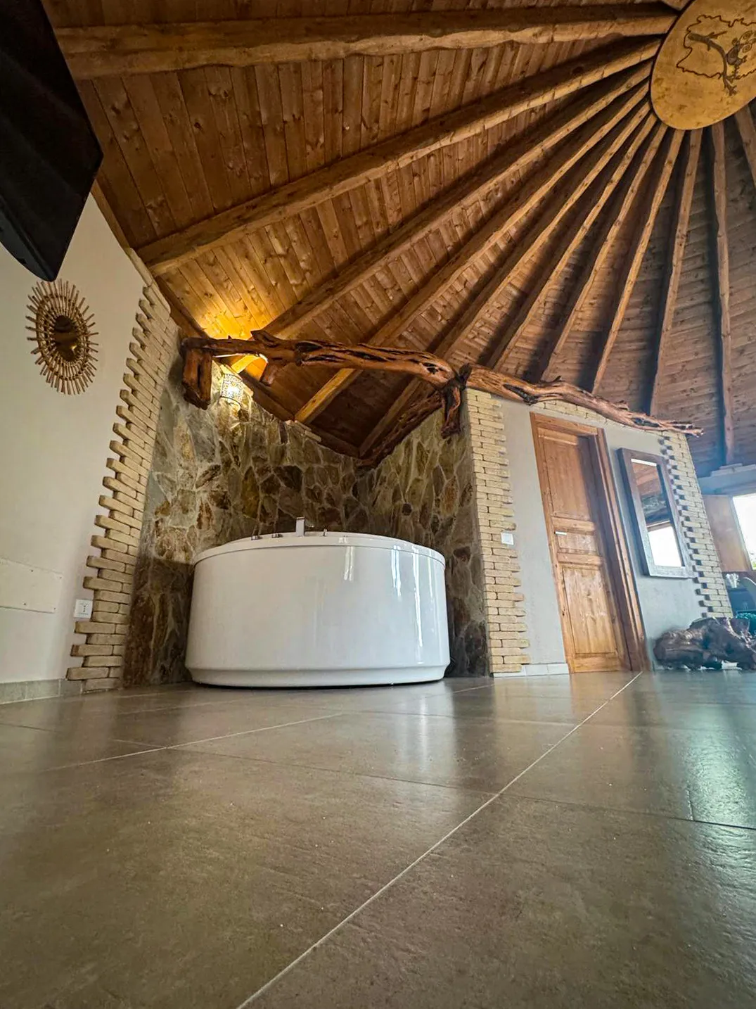 A charming circular stone dwelling with a traditional juniper wood conical roof, crafted in full respect of local heritage and enhanced by refined, modern interiors for a truly comfortable stay.